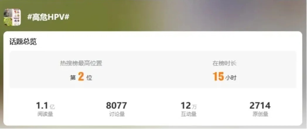 2、“高危HPV”再上熱搜,1.1億人參與話題